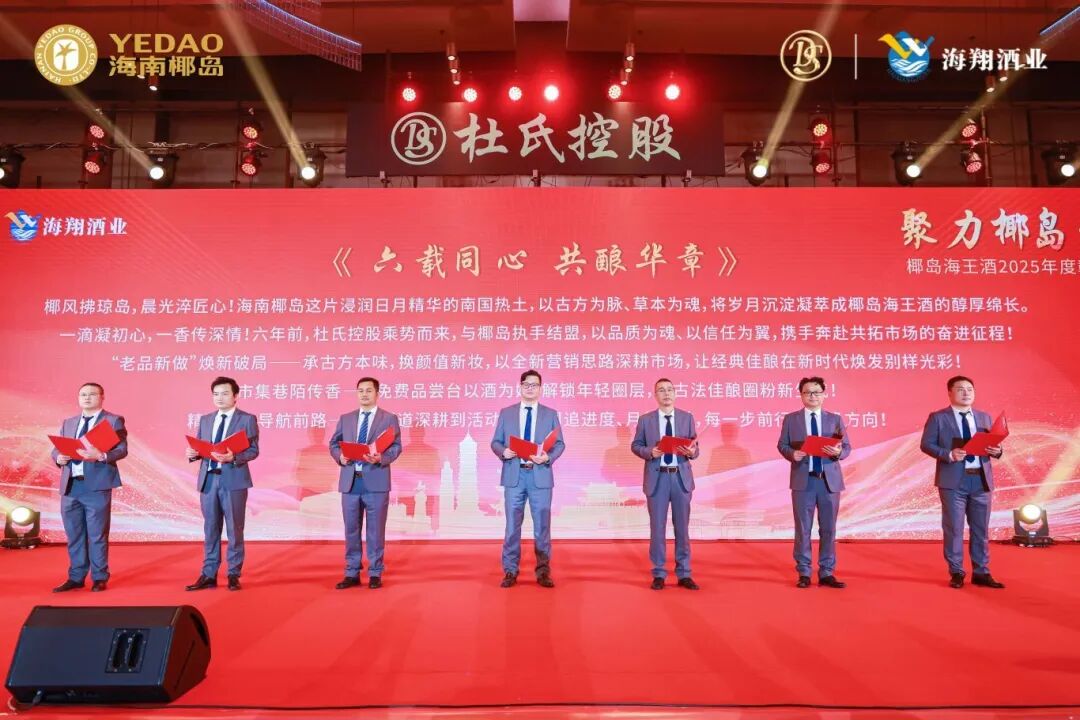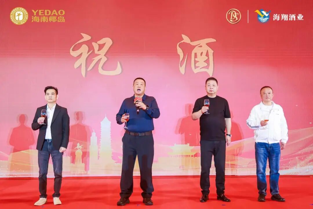 当议程行至情深之处,宴会厅内灯光璀璨,温情涌动。海南椰岛集团党委书记、董事长段守奇,海南椰岛集团酒业分公司副总经理王军,江西杜氏控股董事长、海南椰岛海王酒业有限公司总经理杜永球,海南椰岛海王酒业有限公司副总经理汪岳等并肩而立,将酒杯高举祝酒。