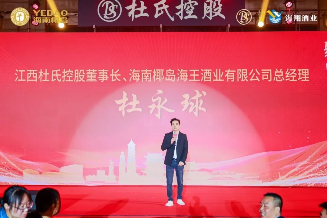 随后,江西杜氏控股董事长、海南椰岛海王酒业有限公司总经理杜永球,以一位与椰岛同行多年的“战友”身份,发表了以“感谢、坚持、共享”为核心的动人演讲。他表达三次感谢,感谢集团的信任、伙伴的扶持、团队的奋斗;他阐述三个坚持,誓言与集团同频、以人才为本、以服务为根;他承诺三重共享,愿与在座每一位共享大健康产业的千载良机、共享椰岛发展的时代红利、共享企业成长的丰硕成果。言辞恳切,句句肺腑,引发了在场所有经销商与合作伙伴的深深共鸣。