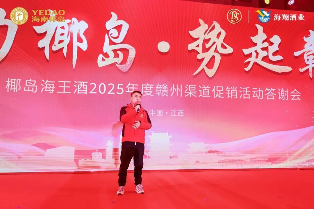 作为东道主与市场一线的中坚力量,赣州市海翔酒业有限公司总经理陈玉松的发言则充满了并肩作战的烟火气与深情厚谊。“每一份订单,都是信任的托付;每一次挑战,都是智慧的共担;每一份成绩,都是心血的凝聚。”他动情地回顾与伙伴们共同奋战、将椰岛海王酒醇香洒遍赣南每个角落的日日夜夜,并郑重承诺将持续优化服务、强化支持,做各位伙伴最可靠的后盾。